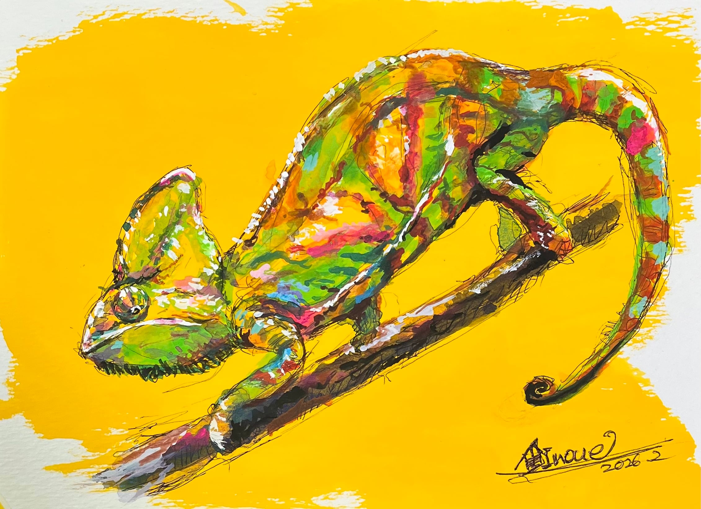 魅力的な雰囲気漂うカメレオンのラフ画。