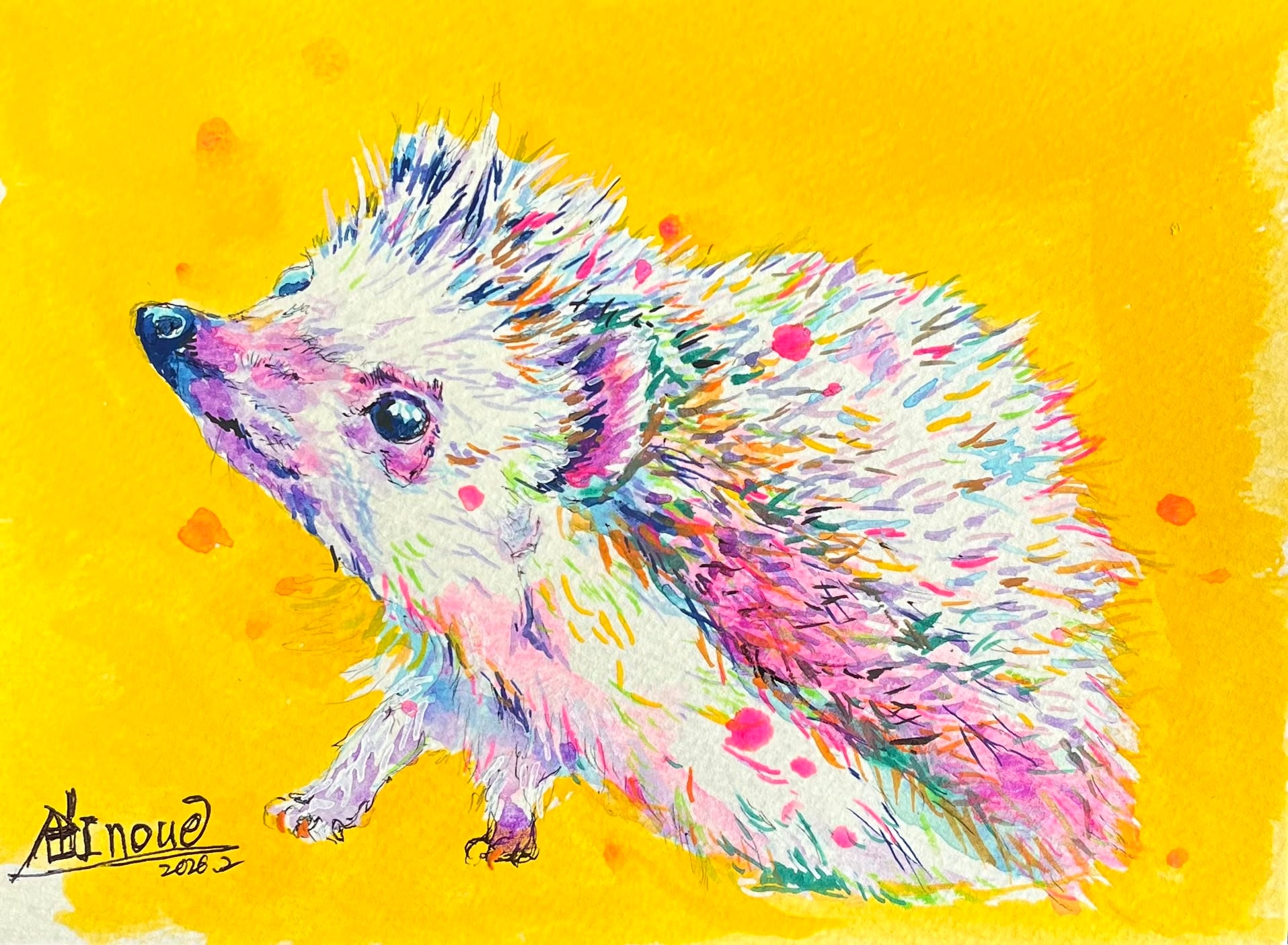 魅力的な雰囲気漂うハリネズミのラフ画。